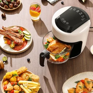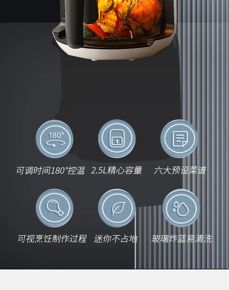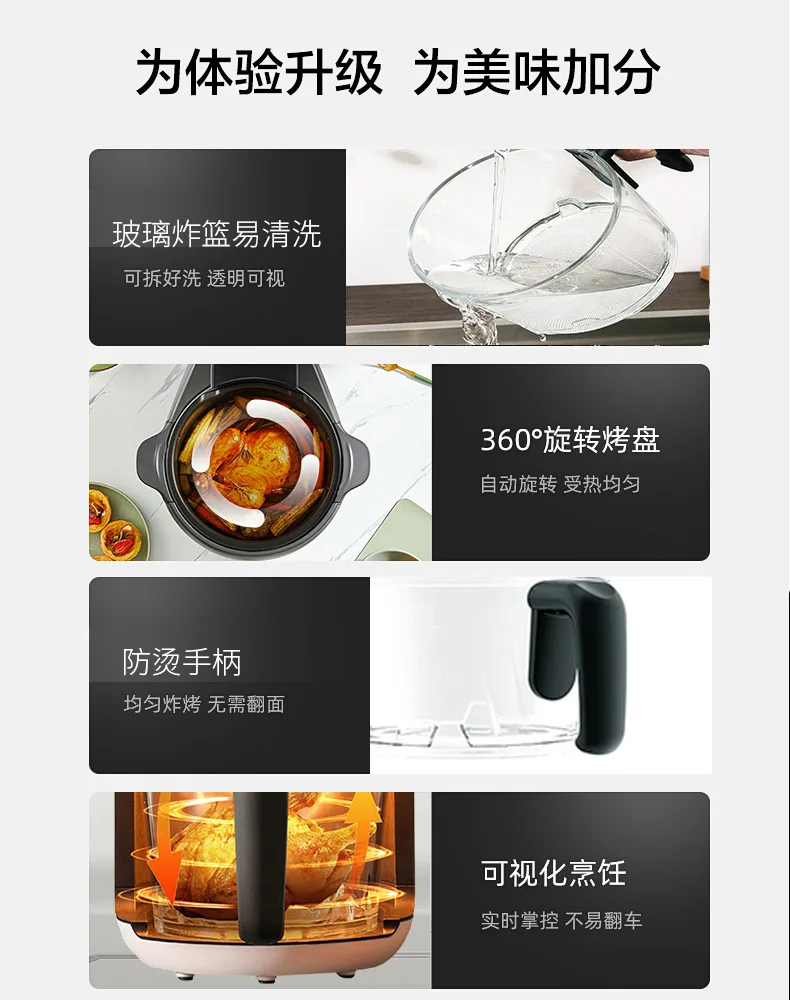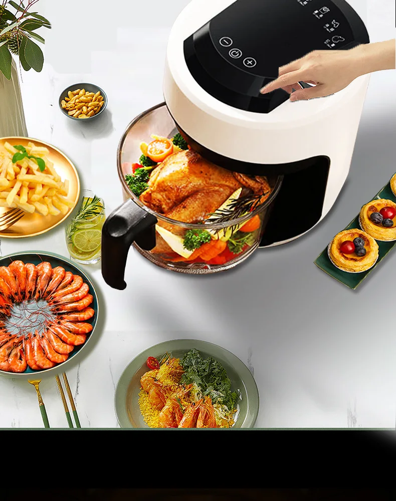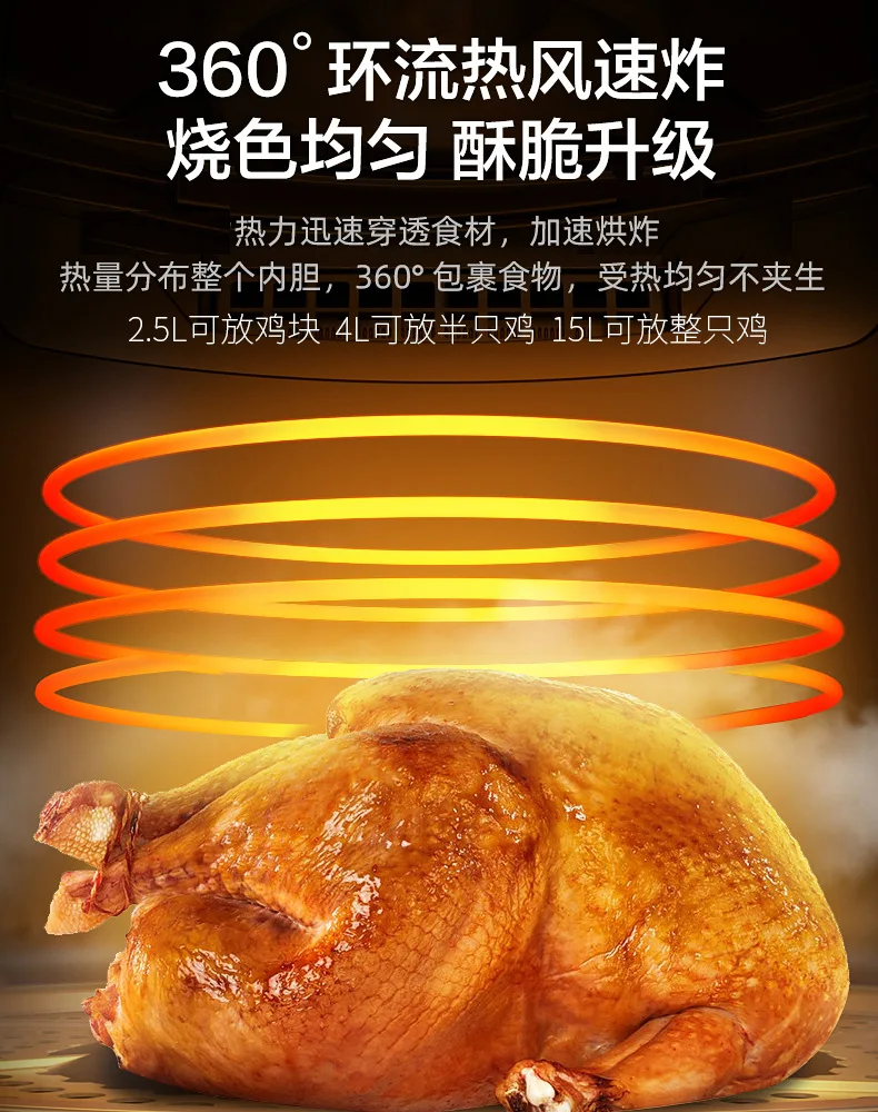 Air Fryer & Gourmet has youI saw you through it allDelicious touch is reached. easy to blast without tipping overFull development touch control menu. computer accurate temperature control360 circulation hot wind speed fried color uniform crisp upgrade.Heat quickly penetrates the ingredients. speeding up the bakingHeat distribution throughout the inner tank. 360° wrap food. evenly heated 2.5L can put chicken nuggets 4L can put half a chicken 15L can put the whole chicken